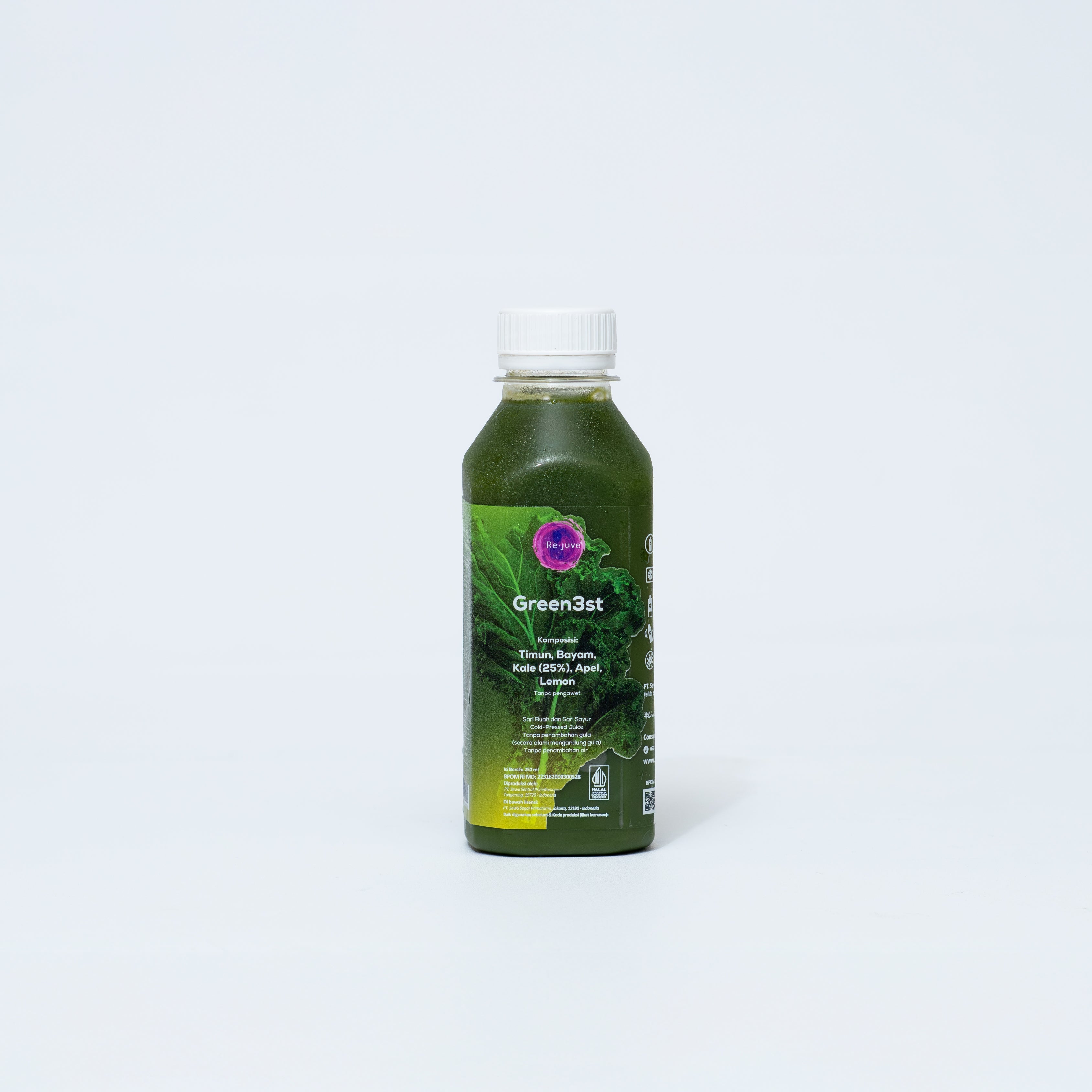 Greenest cold-pressed juice made from 80% vegetables and 20% from fruits. With more than 300 grams of vegetables in one bottle, you can get your daily vegetables intake in one-go.