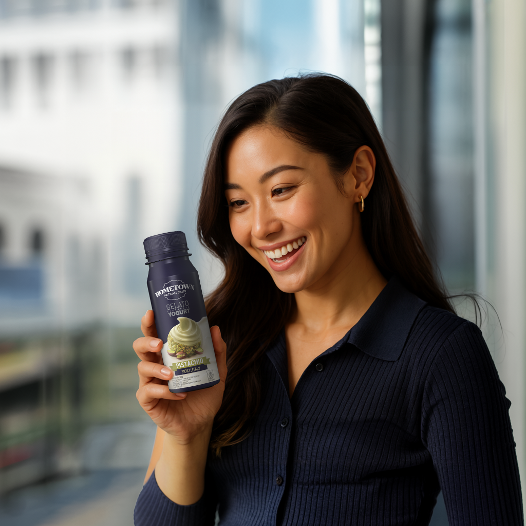 A perfect blend of creamy yogurt, refreshing Italian gelato, and crafted with Real Sicilian Pistachio.