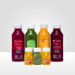 4 bottles of cold-pressed juices for balanced nutrition and sustainable wellness, combined with 3 bottles of wellness SHOTs.