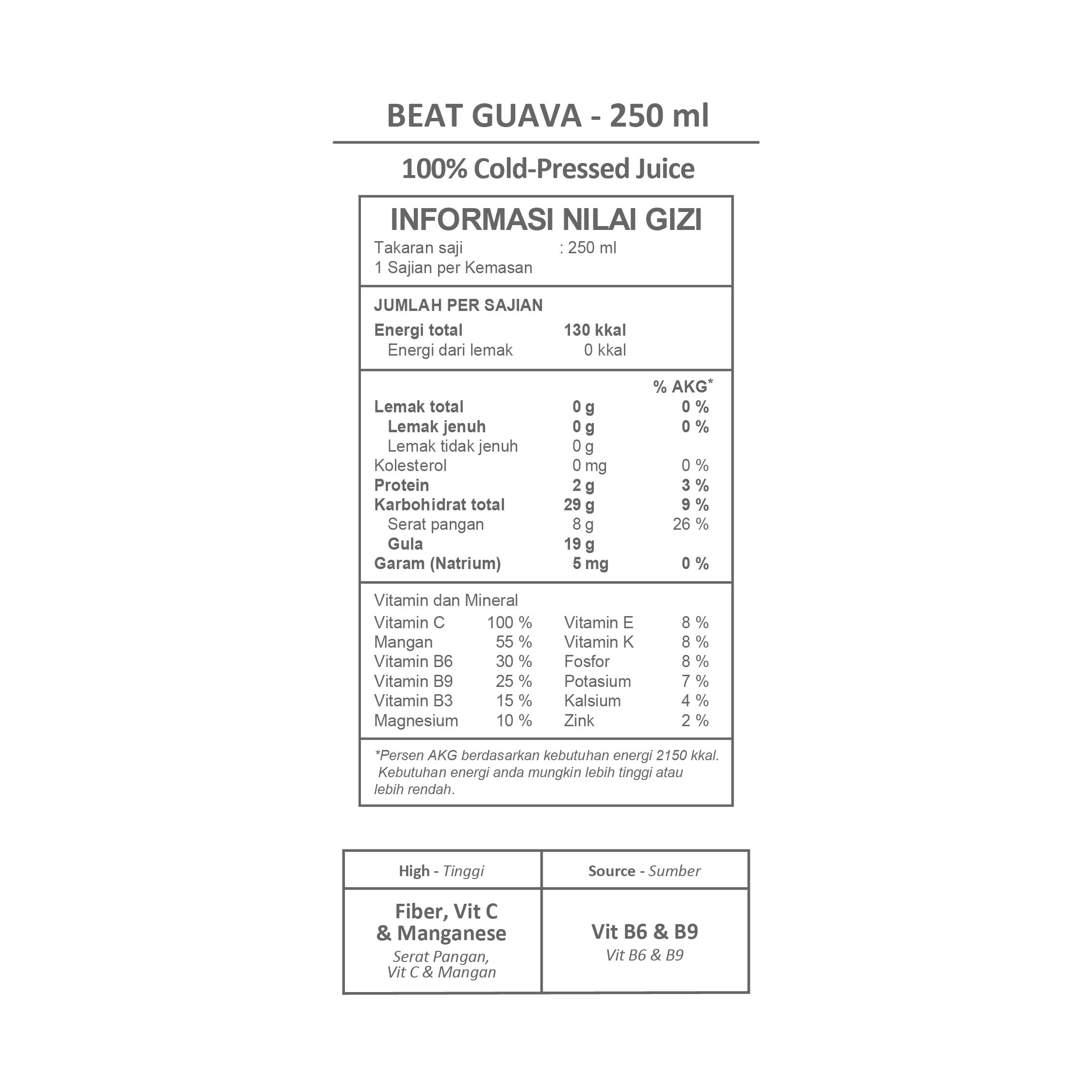 The first Guava Cold-Pressed juice you will ever encounter. With the combination of fresh ingredients of Fresh Crystal Guava, Pineapple and Beet further boost the number of thrombocytes (Trombosit) inside the body