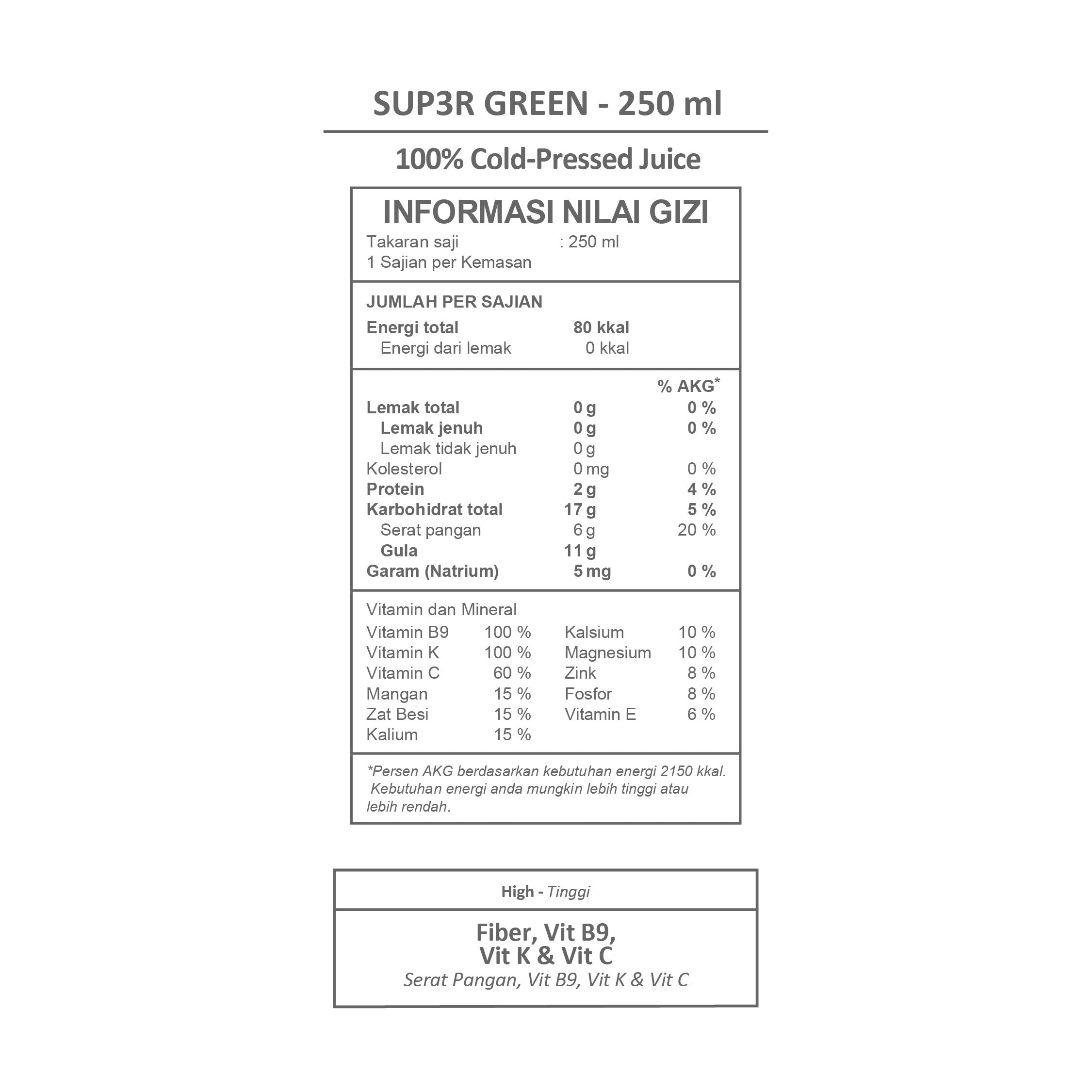 One of the popular signature line in this wholesome green juice, Super Green. Made from a great combination of organic green veggies with a mix of delicious apple and orange which are known to improve digestion, fight inflammation, and help control blood pressure. You can find other green fresh juices such as Asian Green, Dazzling Kale, and Blazing Kale